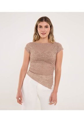 Camiseta Para Mujer Manga Corta Cuello Redondo Color Café Marca Ostu #40092636