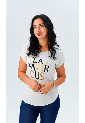 Camiseta Para Mujer Manga Corta Cuello Redondo Color Marfil Marca Seven Seven #28096553