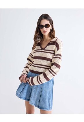 Camiseta Para Mujer Manga Larga Cuello V Color Café Marca Seven Seven #28096456