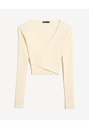 Camiseta Para Mujer Manga Larga Cuello V Color Marfil Marca Seven Seven #28096421