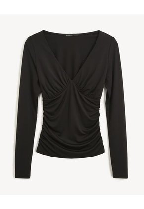 Camiseta Para Mujer Manga Larga Cuello V Color Negro Marca Seven Seven #28096479