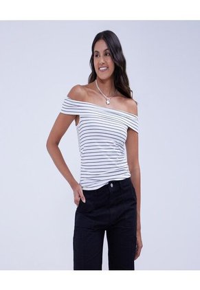 Camiseta para mujer, escote cuadrado, manga sisa, silueta ajustada. Diseño off shoulder con rayas horizontales en un tono oscuro, úsala con jeans o faldas para darle versatilidad a tus looks casuales. Hecha en poliamida y elastano.Especificaciones:Modelo: Manga SisaColor CrudoComposición: 86% Poliamida 14% ElastanoTipo de Manga: Sin MangasInstrucciones de Lavado:No dejar en remojoLavar en agua fría separadamenteNo usar blanqueadorNo retorcerSecar a la SombraPlancha tibiaHecho en ColombiaFabricado por: Manufacturas Eliot SAS