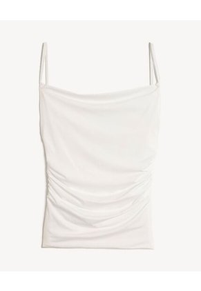Top para mujer con cargaderas finas y escote drapeado que realza el movimiento y suma un toque sofisticado. Silueta ajustada ideal para salidas nocturnas, cenas casuales o planes con amigas. Una prenda que resalta sin esfuerzo. ¡Inclúyelo en tus looks favoritos!Especificaciones:Color: CrudoComposición: 79% Poliéster 21% ElastanoTipo de cuello: Cuello RedondoTipo de manga: Sin MangasInstrucciones de Lavado:No dejar en remojoLavar en agua fría separadamenteNo usar blanqueadorNo retorcerSecar a la SombraPlancha tibiaHecho en Colombia