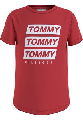 Camiseta Roja Con Logo Estampado Gráfico En El Pecho Tommy Hilfiger