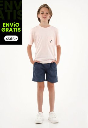 Camiseta Rosada Con Bordado Y Bolsillo Para Niño