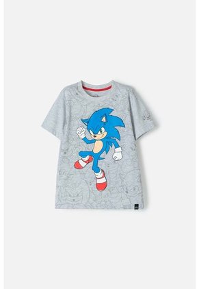 Camiseta Sonic Manga Corta Gris Jaspe Para Niño 14