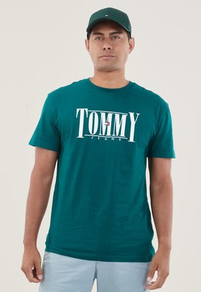 Una camiseta que refleja tu compromiso con la moda sostenible: confeccionada en algodón orgánico de transición. Su corte regular te brinda comodidad sin igual, mientras el icónico logo de Tommy Jeans estampado en el pecho, en un tamaño considerable y tipografía Serif, agrega un toque distintivo.