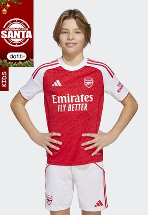 Más que colores, una identidad. Esta camiseta local del Arsenal para niños de adidas combina el clásico rojo con mangas blancas, pero lo que realmente destaca son las "A" de estilo gótico inspiradas en un escudo vintage, repetidas al frente y atrás como guiño al legado del club. Confeccionada en un tejido suave, ofrece total comodidad para vivir el fútbol dentro y fuera de la cancha.