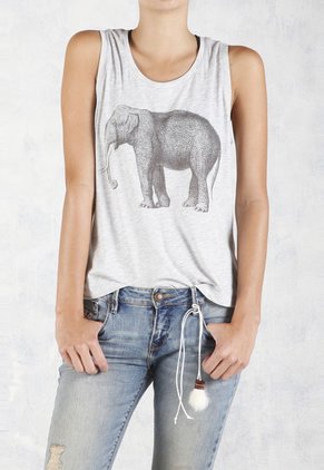 algodón y poliéster. Diseño con estampado de elefante en la parte frontal, manga sisa y bordes reforzados.