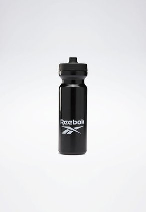 Caramañola Negro-Blanco Reebok fundation, elaborada en polipropileno, silicona, termoplástico, diseño deportivo, estilo botella de textura lisa a dos tonos con detalle estampado alusivo a la marca que genera contraste en blanco. Tiene tapa de enroscar con boquilla, válvula anti-fugas que ayuda a prevenir derrames. Mantén siempre agua a la mano. Este accesorio está libre de BPA.