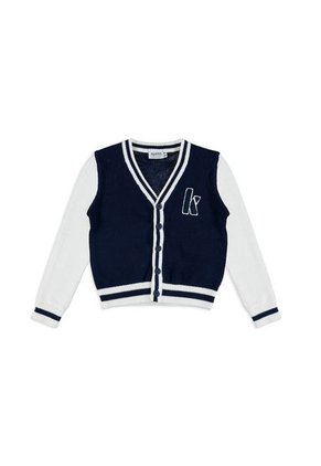 Cárdigan De Niño En Color Azul Oscuros Manga En Contraste Tono Blanco Con Logo Tipo Parche Bordado En Pecho Una Prenda Ideal Para Combinar Con Todos Tus Looks