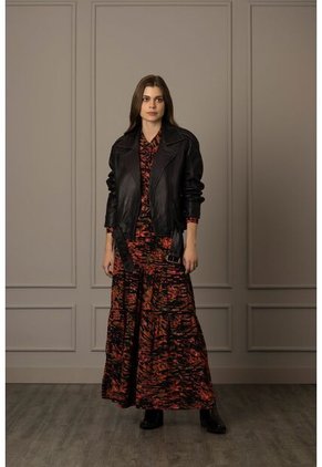 Dale un nuevo aire a tu estilo con nuestra chaqueta biker ungendered de cuero ovino con efecto envejecido. Su diseño oversized hasta la cadera, hombro rodado y cuello con solapa, integra los detalles sutiles de bolsillos con cremallera, cinturón en cuero y charreteras en hombros que hacen de esta prenda una propuesta para hombres y mujeres contundentes. Úsala en clima frío y templado para generar looks de moda actuales.