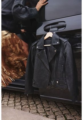 Inspirados en los años 80, las chaquetas tipo biker son un clásico atemporal que se reinventa para darle ese toque glam a cualquier outfit. De fit oversized en hombros y mangas, esta chaqueta de cuero ovino integra en su diseño charreteras en hombros y ruedo decorativas, cuello con solapa de esencia rock sofisticada, cremalleras en puños y cremallera diagonal en frente. Puedes llevarla sobre un vestido de flores para un look retro romántico, o usarla sobre un crop top y jeans ajustados con botines en cuero Vélez para un look más urbano. ¡Sus posibilidades de uso son infinitas!
