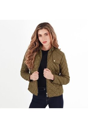 chaqueta enguatada ultra ligth cuello alto con detalle solapa no funcional en hombro, bolsillos delanteros con cremallera y cierre frontal con cremallera separable.