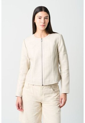 Chaqueta De Cuero Tejido Para Mujer Woven Chaqueta De Cuero Tejido Para Mujer Woven Crema L VÉLEZ