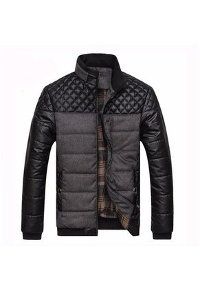 Chaqueta Hombres Calida Cuero PU Poliester 004 Negro Gris