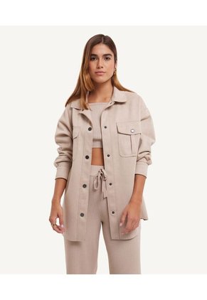 Chaqueta para mujer con cuello camisero, bolsillos de parche, broches metálicos y silueta holgada en material gamuzado. Chaqueta Tipo Camisa Larga Para MujerChaqueta ModaFit: N/AColor: BeigeComposición: Poliéster 95% Elastano 5% INSTRUCCIONES DE LAVADO:No dejar en remojoLavar en agua fría separadamenteNo usar blanqueadorNo retorcerSecar a la sombraPlancha tibia