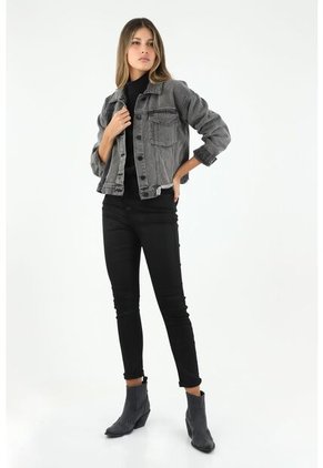 ¡New arrivals! Esta chaqueta en índigo negro llegó para ser tu favorita. El desnivel en la pretina, cortes y botones frontales, son detalles perfectos para tus looks más modernos. Además, su contraste de color, será el complemento perfecto para todas tus prendas.Características- Color: negro - Cuello normal - Manga larga - Botones frontales - Silueta regular - Material: 100 % algodón. Sobre el fit La silueta regular de esta chaqueta se adapta a todos los tipos de cuerpos sin limitar los movimientos ya que su fit no es ni muy amplio, ni muy ajustado. Por su confección 100% en algodón es de textura rígida y a la vez, acogedora. ¡Úsala con una básica blanca para un look versátil!