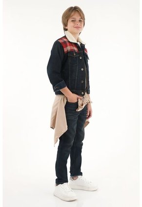 ¡La chaqueta que elevará cualquier look! Con un diseño tipo trucker y detalles que marcan la diferencia, esta pieza es el equilibrio perfecto entre estilo rudo y sofisticación. Características- Color: azul - Tipo Trucker - Tapas decorativas en frente - Almilla con tela de cuadros - Bolsillos de ribete en costados - Forrada en ovejero - Tono oscuro - Material: Algodón 100% Sobre el fit Se ajusta perfectamente manteniendo un look estructurado y cómodo. El interior de ovejero añade calidez, mientras que la almilla de cuadros le da ese toque único que rompe con la monotonía.