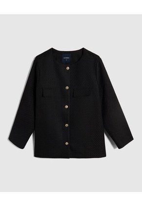 Chaqueta Unicolor Con Botones Para Mujer Curvy Para Mujer Negro Patprimo