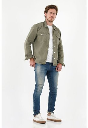 ¡Nunca fue tan divertido vestirse! Con una chaqueta como esta podrás crear combinaciones divertidas, cómodas y llenas del mejor estilo. Características- Color: verde - Perilla de broches en frente - Bolsillos con tapas en frente - Cuello clásico - Material: Algodón 100% Sobre el fit Su diseño tipo Cazadora la hace ideal para que la uses en tus planes casuales sin dejar de lucir siempre bien.
