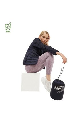 ¡La Chaqueta Yoku acolchada para mujer es perfecta para combinar con cualquier outfit! es acolchada, ultraliviana y puedes llevarla fácilmente ya que es plegable en bolsa. Su relleno es en RPET, material reciclado de las botellas plásticas y tiene cierre tipo broche. ¡Cuida al planeta y usa las mejores prendas!