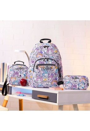 Combo Escolar Juvenil Acuarela Glitter + Lonchera Y Cartuchera