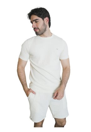 Conjunto Para Hombre Texturizado Camiseta Y Pantaloneta Beige Laguna Blue