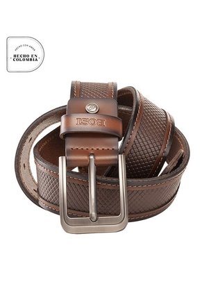 Correa de hombre fabricada en cuero con finas costuras y detalles de color en contraste.
