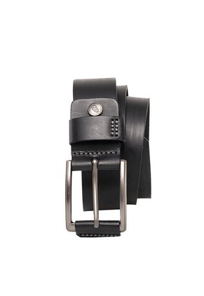 Correa de hombre fabricada en cuero liso con finas costuras que contrastan sutilmente.
