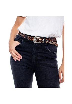 Correa animal print, con ojaletes en frente, hebilla y puntera western.