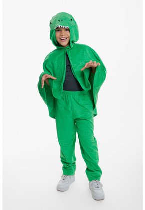 ¡Prepárate para rugir de emoción! Este increíble disfraz de dinosaurio transforma a tu pequeño en el rey de la era jurásica. Con su capucha 3D que incluye dientes blancos realistas y una cola articulada con espinas dorsales, cada detalle está diseñado para despertar la imaginación. El jersey punto piel durazno garantiza comodidad durante horas de aventuras prehistóricas, mientras que la textura de escamas le da ese toque auténtico que hará que se sienta como un verdadero T-Rex..