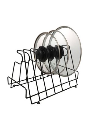 Práctico organizador de tapas, con soporte para sostener del asa de la tapa, con posibilidad de fijarse con tornillos a la puerta o el techo del mueble de cocina .Material: Alambre de acero recubierto en polipropileno negro.Medidas:Alto: 19 cm.Ancho: 32 cm. Profundo: 19 cm. Material: Alambre de Acero / recubrimientoPolipropileno negro,