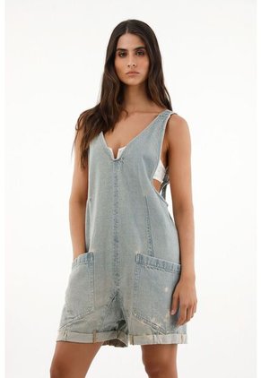 ¡Los domingos vienen recargados de estilo! Un enterizo como este, además de darte comodidad y frescura, te hará sentir en tu mejor versión. Características- Color: azul - En denim - Corto - Cargaderas ajustables - Escote en V - Bolsillos tipo parche en costados - Efecto desgaste - Material: Algodón 100% Sobre el fit Una silueta relajada que te permitirá crear outfits auténticos, a la moda y llenos de personalidad, brindando máxima libertad de movimiento.