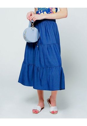 FALDA ADRISSA MIDI EN CHAMBRAY CON FAROLES