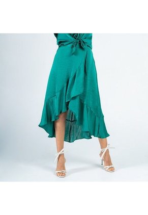 FALDA LARGA SATINADA CELEBRACIÓN ENVOLVENTE CON ELÁSTICO EN CINTURA - POLIESTER 100