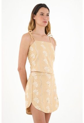 Falda Café Con Detalles Bordados Para Mujer
