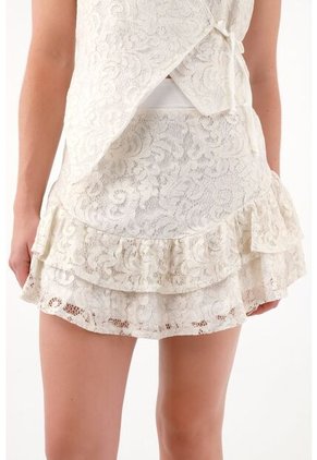 Falda Corta Con Boleros Y Encaje Crudo Para Mujer