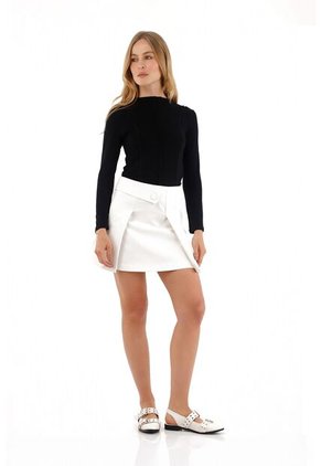 Minimalista pero con carácter, la falda Demi deYESlueta línea A ofrece un diseño con pretina asimétrica, botón forrado y ruedo invisible. Disponible en azul claro, marfil y café, esta falda es ideal para quienes buscan una prenda versátil y sofisticada. Úsala con un top ceñido y mocasines para un look chic de oficina, o con una camiseta básica y sandalias planas para un look relajado de fin de semana.Recomendaciones de uso