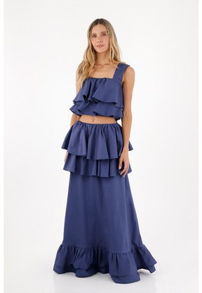 Falda Larga Brumelia Azul Oscuro Mercedes Campuzano