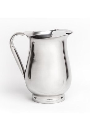 Jarra en acero inoxidable AISSI 304 con media tapa fija y asa, capacidad 1.5 lts. Medidas:17.6 cms alto. Plateado