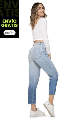 Silueta semi ajustada. Tiro alto. Indigo rigido. Tejido plano