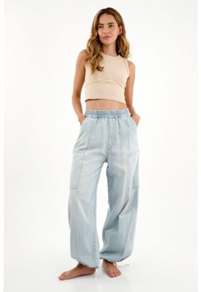 ¡Como ningún otro! Un diseño que te hará sobresalir a donde quiera que vayas gracias a sus detalles únicos y que estarán muy de moda en esta temporada. Características- Color: azul - Pretina enresortada - Bolsillos diagonales - Bolsillos de parche en frente y posterior - Con cortes - Ruedo ajustable con hiladilla - Material: Algodón 100% Sobre el fit Su silueta amplia es perfecta, no sólo para sentirte cómoda, sino también para destacar con mucho estilo en tus planes más importantes.