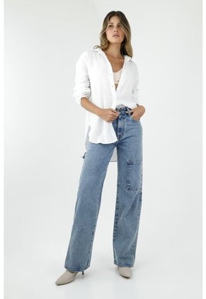 ¡Trendy days! Estos jeans se convertirán en una prenda indispensable de tu guardarropa. Características- Color: Azul - Botón de golpe - Bolsillos en la parte delantea y trasera - Siete bolsillos - Ruedo con dobladillado - Tono claro - Material: Algodón 100% Sobre el fit Su silueta recta le aportará a tus looks un aspecto muy cool y lleno de estilo.