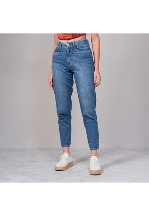 -Jean Momfit Talle alto -Bota ajustada -Tono medio -Desgaste en lavanderia -Tejido plano 100 algodon Material: