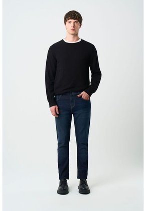 Un básico atemporal que se adapta a cada pieza de tu guardarropa, este jean semi fitted en blue denim combina una textura de lujo con el confort diario que necesitas. Sus detalles en cuero sobre pasadores y relojera aportan un toque artesanal que realza su silueta. Con un acabado sutil que enfatiza sus detalles, este jean se convierte en un clásico renovado, perfecto para cualquier ocasión.