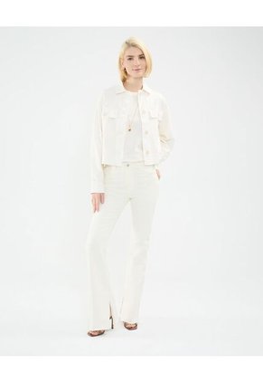 Jeans flare para mujer, tono blanco, tiro alto, silueta ajustada, textura lisa, altura hasta el tobillo, botas acampanadas, diseño en tendencia que no puede faltar en tu closet, úsalo para darle versatilidad a tus looks casuales. ¡Renueva tu closet ahora!Especificaciones:Modelo: FlareColor: BeigeComposición: Algodón 99% Poliéster 1%Fit: FlareTiro: MedioInstrucciones de Lavado:No dejar en remojoLavar en agua fría separadamenteNo usar blanqueadorNo retorcerSecar a la SombraPlancha tibiaHecho en Fabricado por: Pash SAS