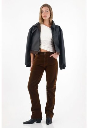 Jean Recto De Tiro Medio En Velvet Café Para Mujer