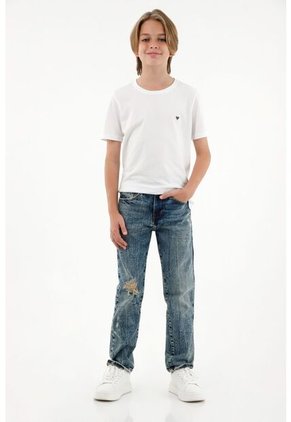 ¡Denim, denim, denim! Por siempre nuestro favorito cuando de estilo se trata. Características- Color: azul - Cinco bolsillos - Ajuste de cierre y botón - Roto con desgaste - Efecto Acid Wash - Material: Algodón 99% Elastano 1% Sobre el fit Ni muy ajustado, ni muy holgado; simplemente perfecto para el match del día a día.