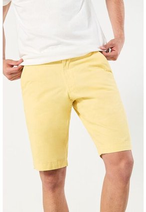 Bermuda en dril para hombre en tono unicolor cuenta con bolsillos diagonales funcionales, tiro bajo, cierre con cremallera metálica y un fit sutilmente ajustado al cuerpo. Arma un look fresco combinando esta prenda con una camisa manga larga y un par de tenis. ¡Será la mejor opción para los climas cálidos!